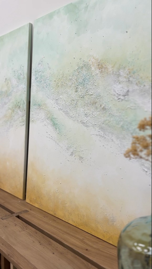 Díptico en lienzo sobre bastidor de madera en acrílico en textura.